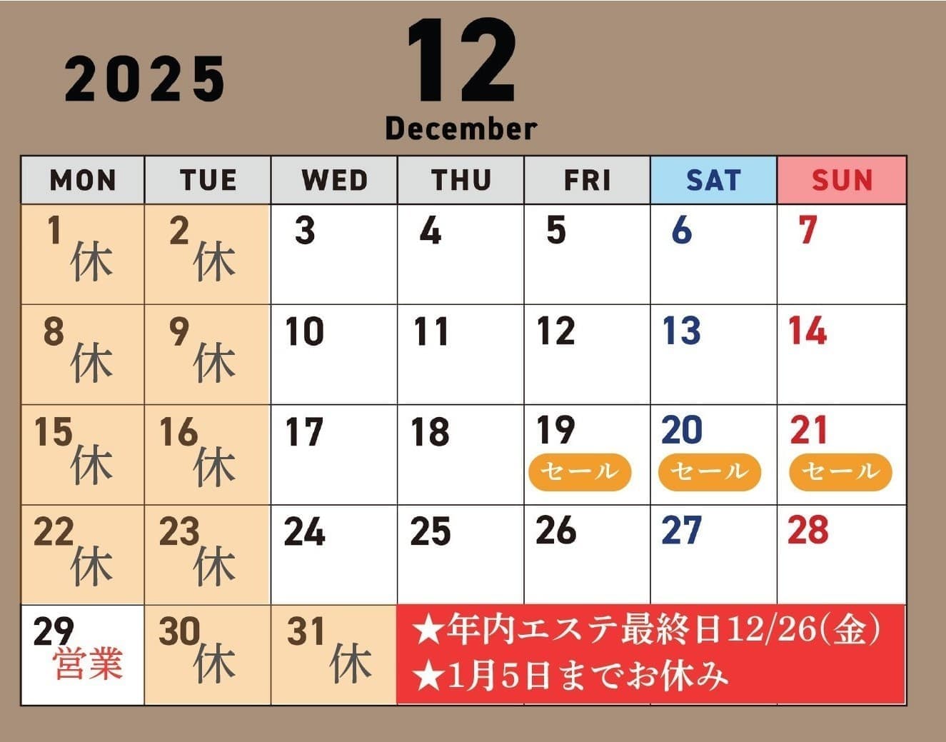 12月度カレンダー