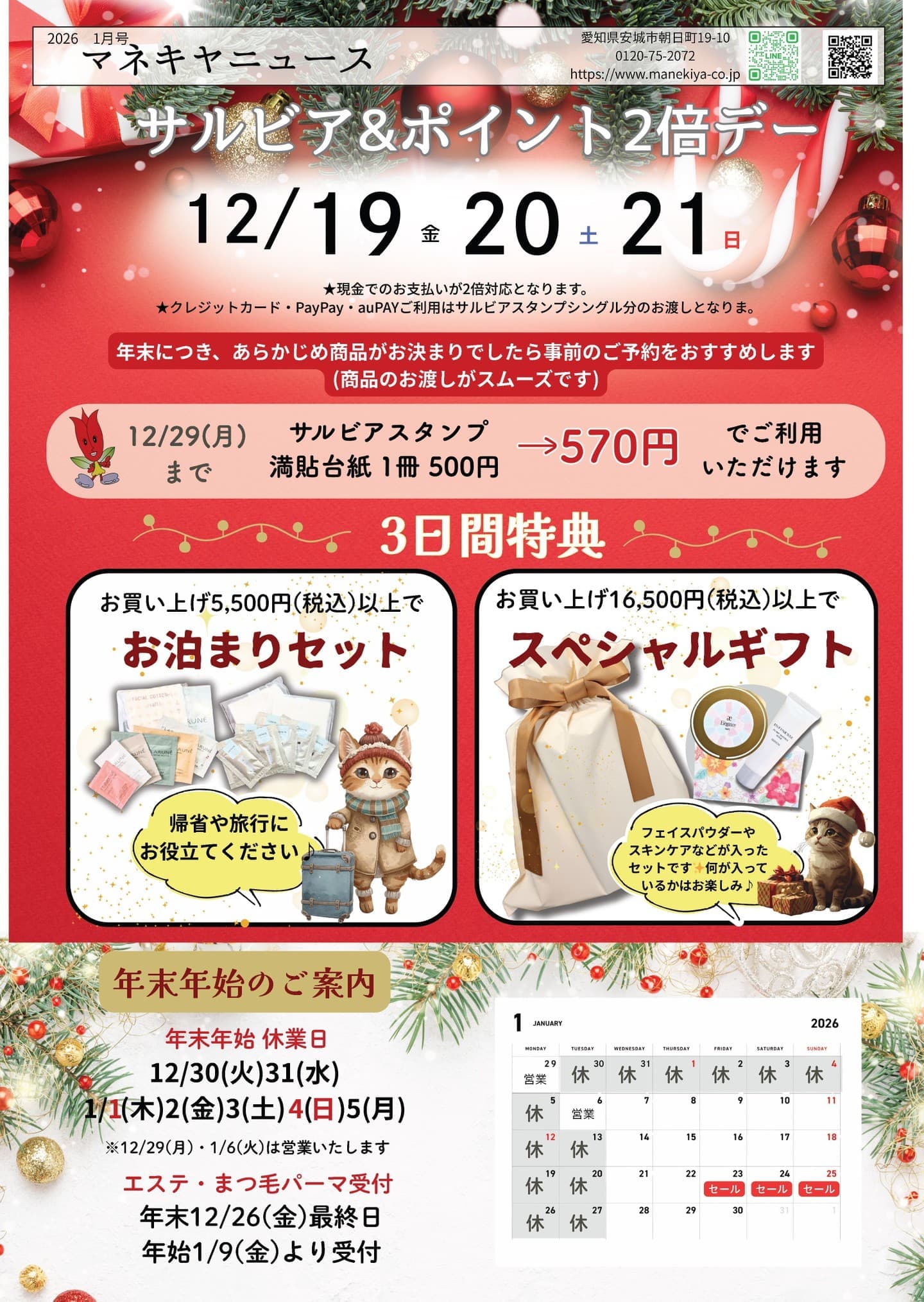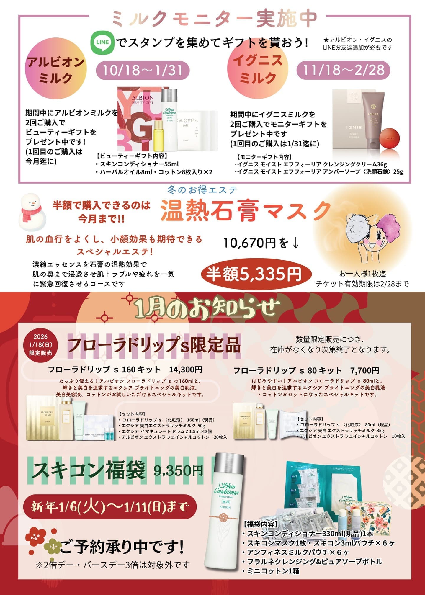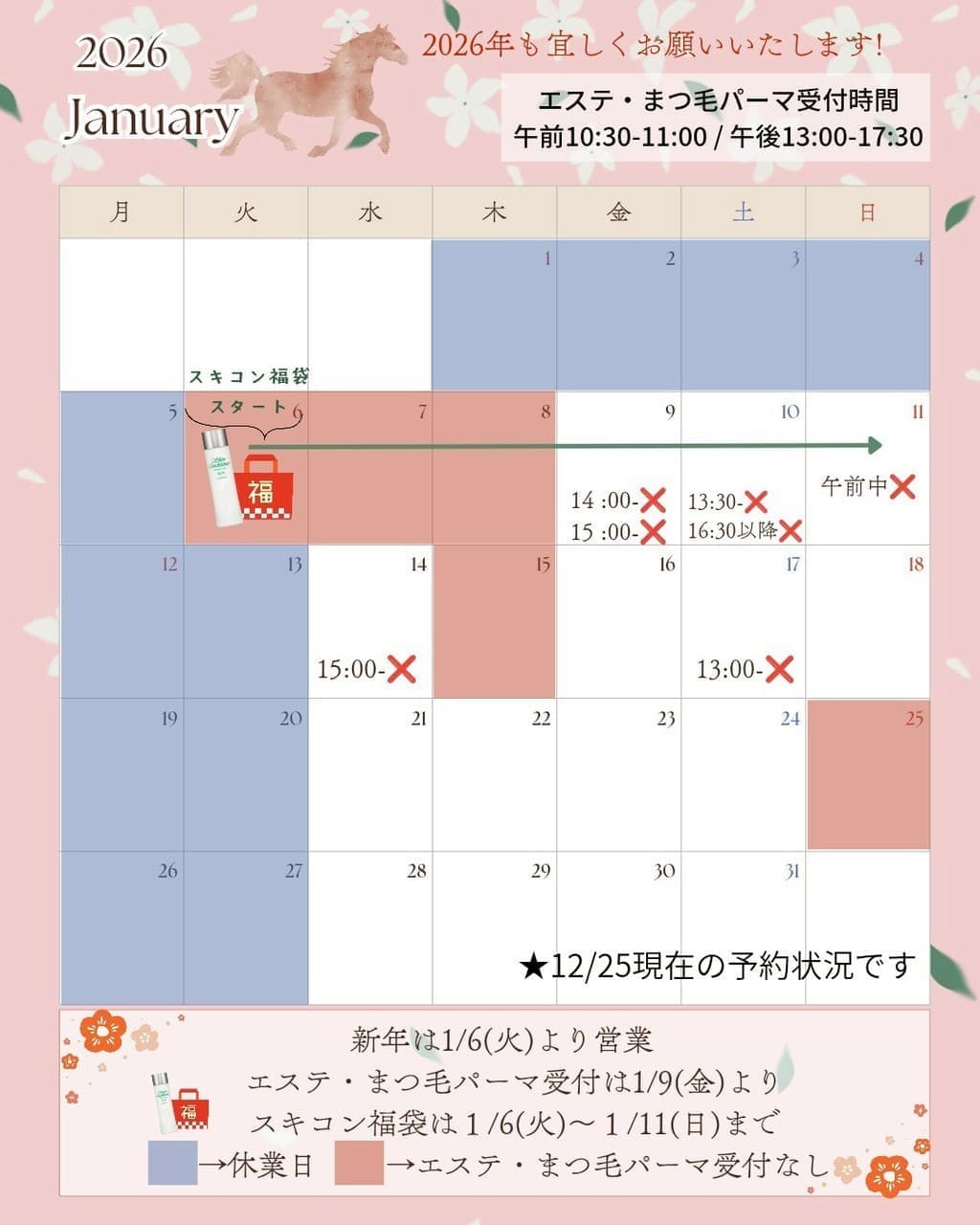 ★年末のエステ・まつ毛パーマは満席となりました。新年は1/9(金)より受付いたします。