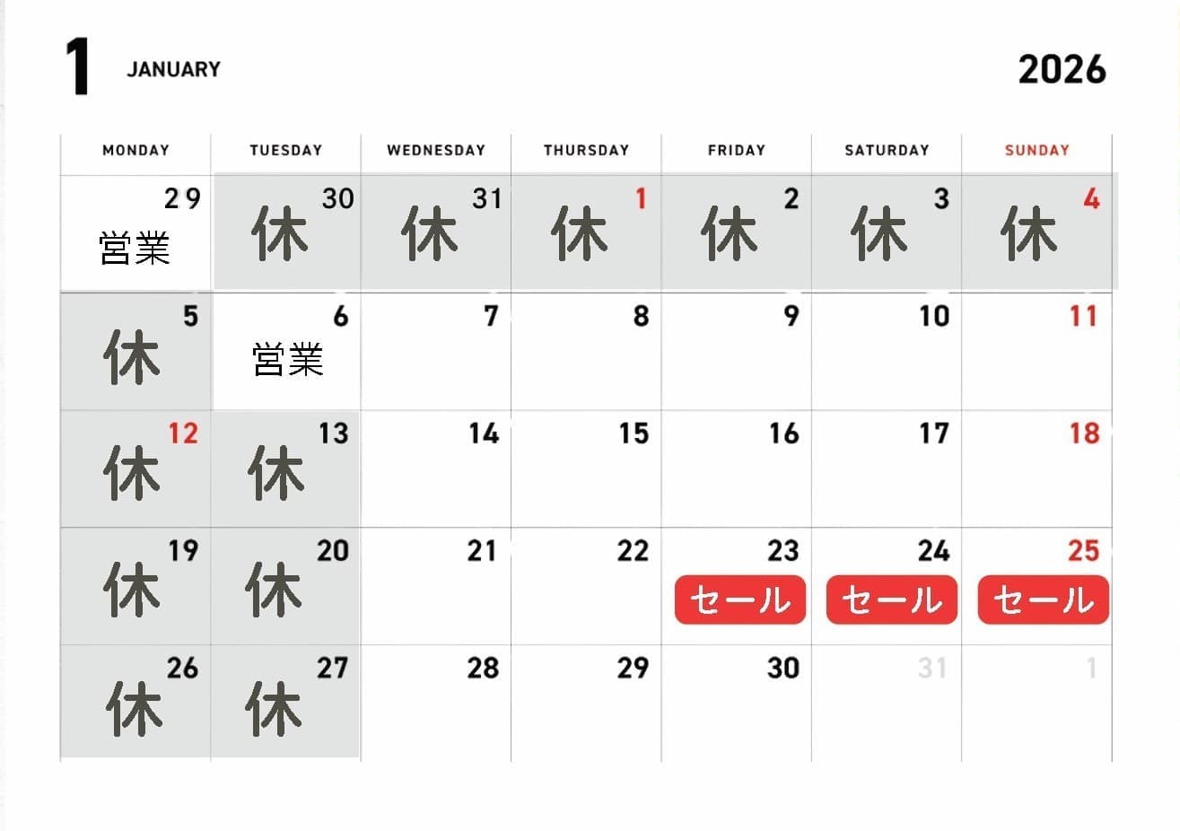 ★営業日年末12/29(月)まで新年1/6(火)より営業いたします。