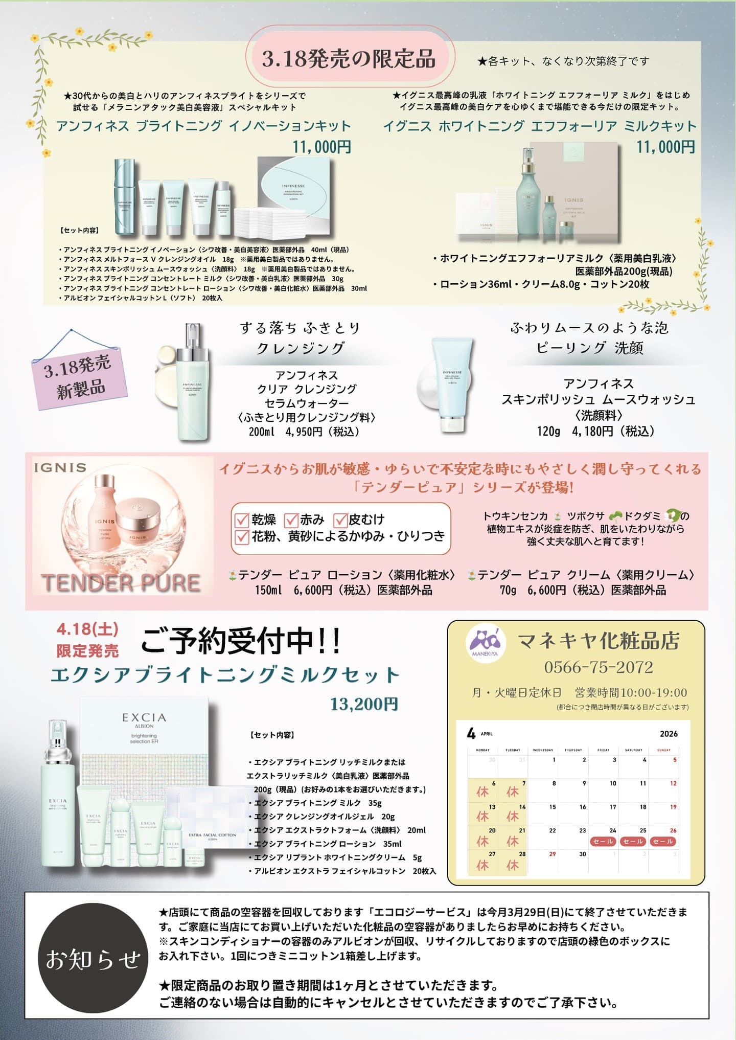 エクサージュミルクお取り扱いあります